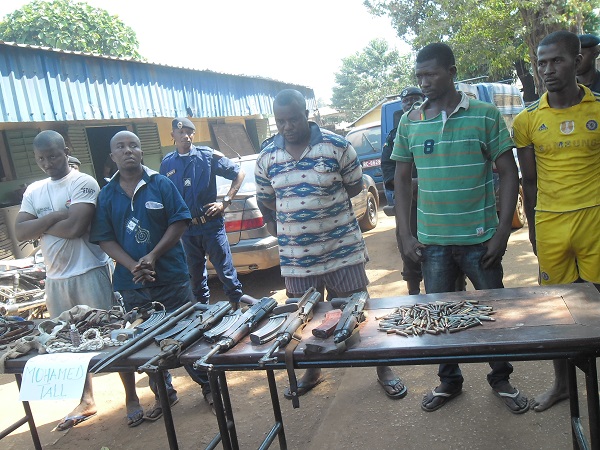 Une présentation faite à la sûreté régionale de Conakry par le porte parole de la police Aboubacar Kassé. Parmi les personnes interpellées, figurent deux militaires radiés de l’effectif de l’armée guinéenne. Selon Aboubacar Kassé, ces individus sont des multirécidivistes. Ils auraient participé à plusieurs attaques à main armée, des cas de braquages, association des malfaiteurs et autres.
