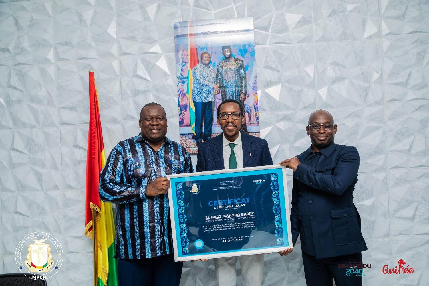 MPEM : Le Ministre Fassou Théa délivre un satisfécit au DG de l’EDG, Elhadj Gando Barry pour service rendu