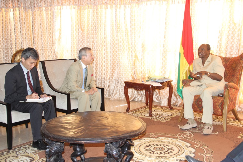 Le Président de la République, Pr Alpha Condé, a reçu en audience dans la soirée du mercredi 10 juillet 2013 au Palais Sékhoutouréya, une délégation japonaise composée de l’ambassadeur du Japon en Guinée, M. Naotsugu Nakano et le directeur régional de l’Agence japonaise de coopération internationale (JICA) M. Ryuichi Kato. Ladite ...