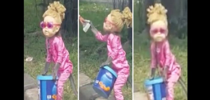Une vidéo a émergé d’un singe qui a été enchaîné au bord de la route et forcé de mendier alors qu’il était habillé pour ressembler à une poupée blonde. Il a été filmé à Bogor, en Indonésie, portant le masque suffocant, d ...