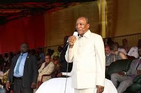 Le président guinéen Alpha Condé saluant la foule à Conakry, 4 février 2018. Confronté à des grèves et manifestations, dont certaines meurtrières, le président Alpha Condé a été hué par des centaines de femmes lors d'une cérémo ...