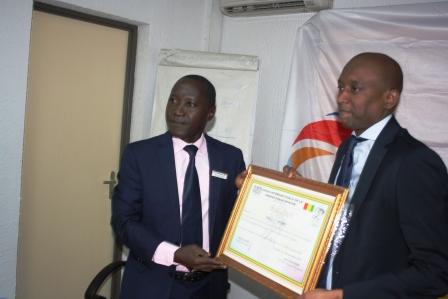 C’est en présence des ses collaborateurs que Monsieur Cheick Omar DIALLO, Directeur Général de Total Guinée a reçu le satisfécit des mains de Jean-Pierre Ouendeno, Secretaire Général Adjoint de la section guinéenne de l’Union de la presse francophone, dans la salle de conf&e ...