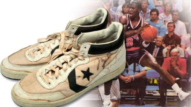 Cette paire de chaussures avait été portée par la légende du basket-ball lors de la finale des Jeux olympiques de Los Angeles. Il les avait à l'origine offertes à un ramasseur de ballons. Le nom de Michael Jordan, qui est actuellement le sportif retraité le mieux payé au monde, fait tou ...