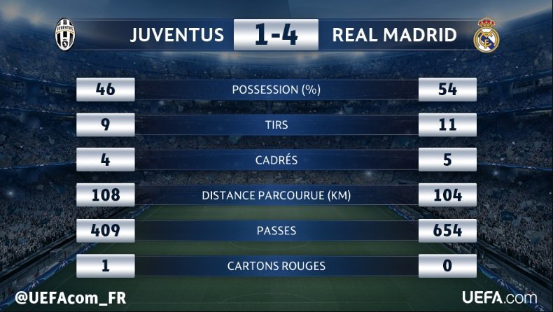 Finale de la Ligue des champions : Real Madrid écrase en finale Juventus Turin 4-1.